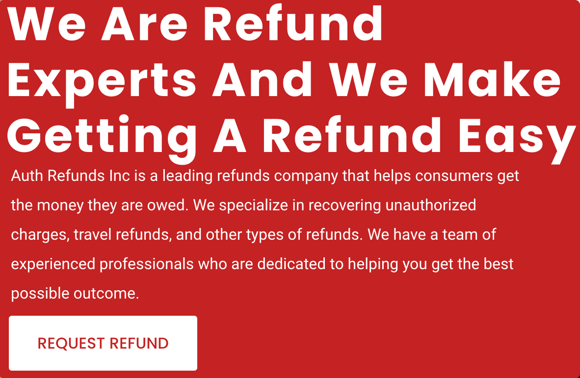 Auth Refunds Inc is a leading refunds company that helps consumers get the money they are owed. We specialize in recovering unauthorized charges, travel refunds, and other types of refunds. We have a team of experienced professionals who are dedicated to helping you get the best possible outcome. We understand that dealing with a refund can be frustrating and time-consuming. That’s why we make it our mission to make the process as easy as possible for you. We will work with your credit card company, travel agency, or other merchant to get your refund as quickly as possible.